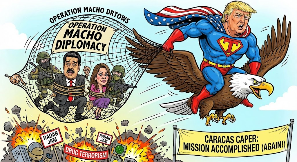 2026년 1월 3일, 미국 특수작전부대가 카라카스에서 대담한 급습을 실행하여 베네수엘라 대통령 니콜라스 마두로와 그의 아내 실리아 플로레스를 생포했다. 도널드 트럼프 대통령은 이를 서반구에서 마약 밀매와 권위주의에 대한 결정적 타격이라고 묘사했다. 이 작전은 공습, 레이더 교란, 지상팀을 포함하며, 트럼프 행정부의 수개월에 걸친 압박의 절정으로, 마약 테러 혐의 기소와 라틴 아메리카에서 미국의 지배력을 재확인하려는 광범위한 전략을 반영한다.