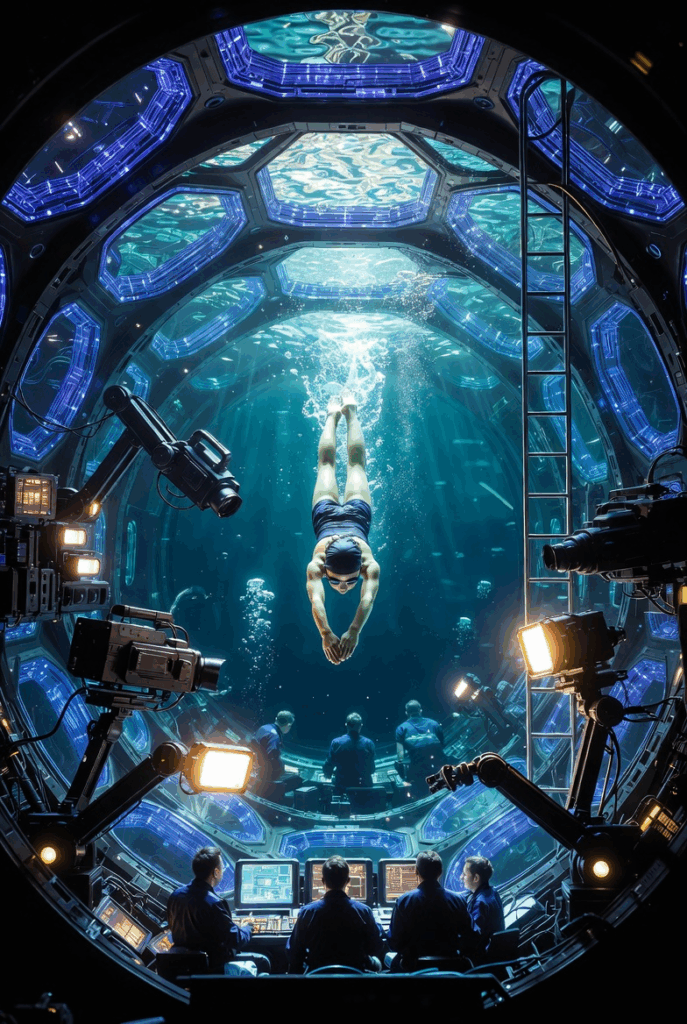 그의 순응적인 태도에 서도준은 만족한 듯 옅은 미소를 지었다. 그는 서준을 수중 트레이닝실, 통칭 ‘큐브(The Cube)’로 안내했다. 사방이 특수 유리로 된 거대한 수조였다. 수조 안에는 수십 개의 카메라와 센서, 그리고 물의 유속을 조절하는 장치가 달려 있었다.