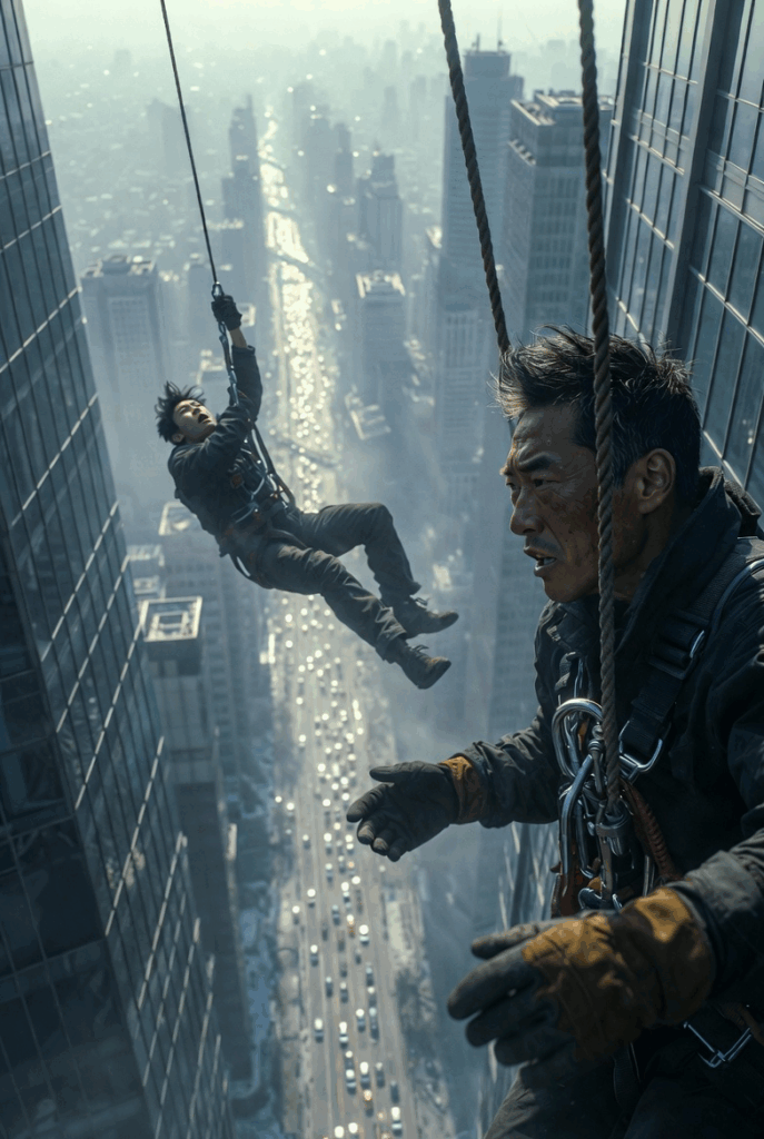경비원들에게 막혀 로비에서 발을 동동 구르던 최서연은 문득 고개를 들었다. 그리고 수백 미터 상공의 로프에 매달려, 35층 창문에 파리처럼 붙어있는 서준을 발견했다. 그녀의 눈이 번뜩였다.