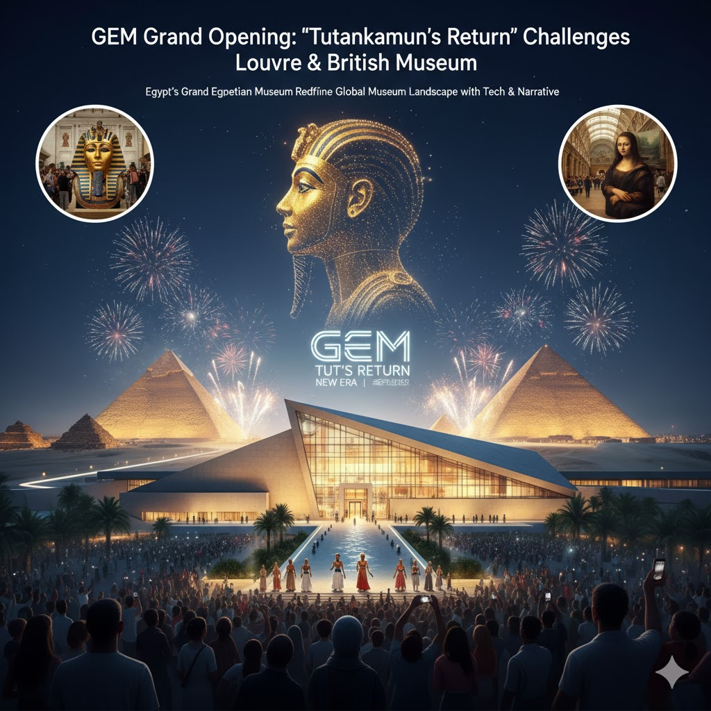 - ๋ฌธํ ์ธ๊ต์ ์ค์ฌ์ถ ์ด๋: GEM์ ์ด์งํธ์ ๊ฐ์ฅ ์์คํ ๋ฌธํ์ ์ฐ์ ํ๋ฐ ๋ชจ์ ๋ฌธํ์ ์ฃผ๊ถ๊ณผ ์๋ถ์ฌ์ ์์งํ๋ค. ์ด๋ ๋ฃจ๋ธ๋ฅด, ๋์ ๋ฐ๋ฌผ๊ด ๋ฑ ์๊ตฌ๊ถ ๋ฐ๋ฌผ๊ด์ด ๊ฐ์ง ‘์ธ๊ณ ๋ฌธํ์ฌ ์์ง์ ์ค์ฌ’์ด๋ผ๋ ๊ธฐ์กด์ ์์์ ๋์ ํ๋ ์์ง์ ์ธ ํ๋ณด๋ค.
